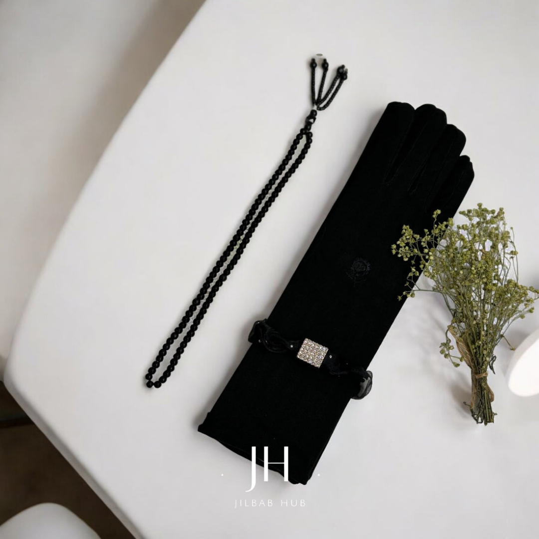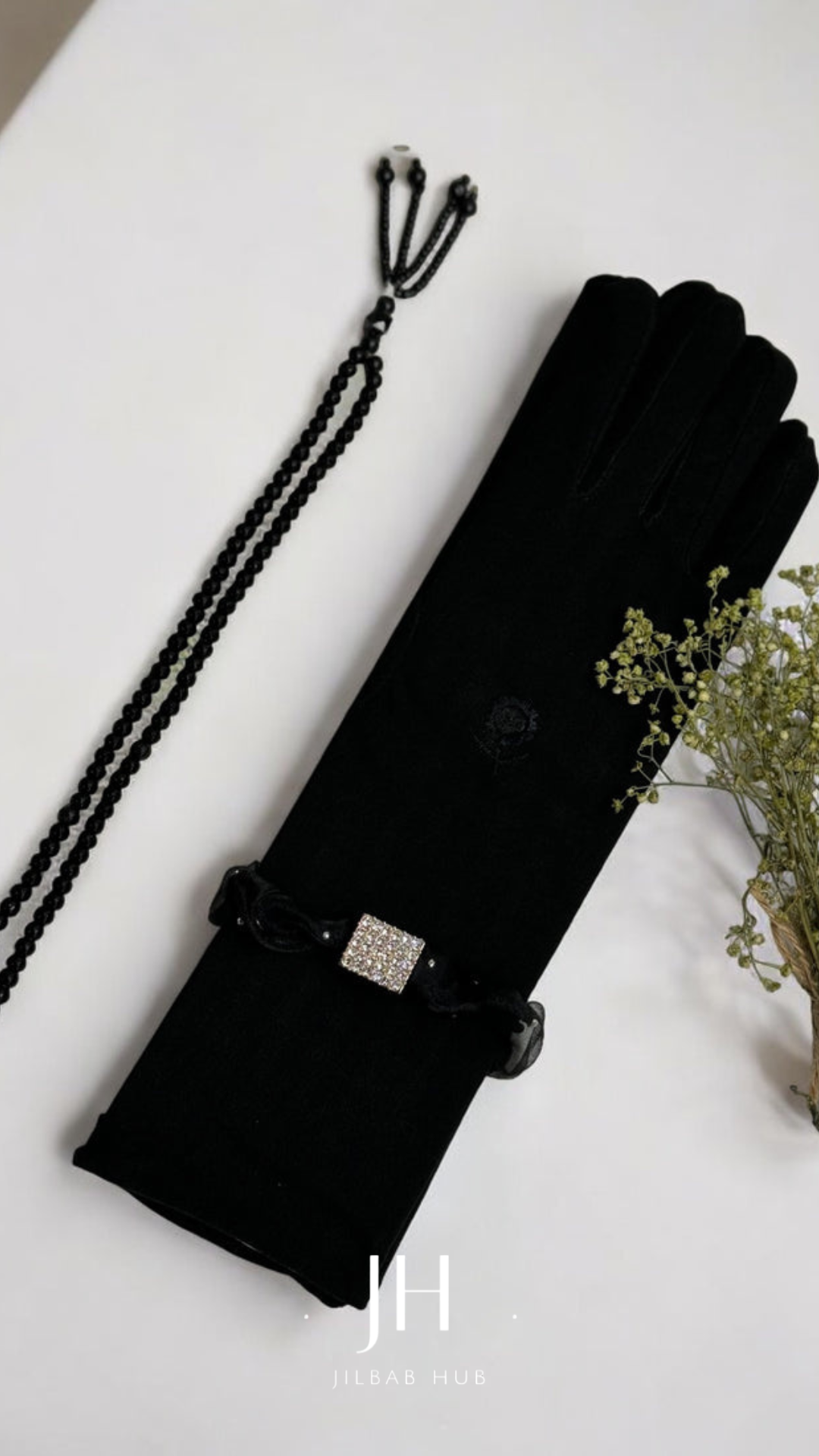 Long Stretchable, High quality Polyester and spandex. Stitchef floral design & wrinkle free. covers upto forearms also best use for hijab in madrassa.